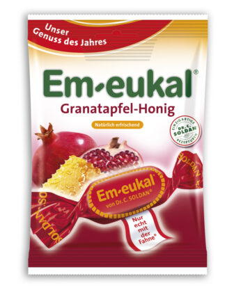 Adelsdorf – Der neue Genuss des Jahres Em-eukal Granatapfel-Honig verspricht ab sofort ein Umsatzplus: Denn Honigbonbons wachsen zweistellig. Von 2014 auf 2015 stieg ihr Umsatz um elf Prozent.* Die Bonbonmacher von Dr. C. SOLDAN kombinieren das beliebte Naturprodukt raffiniert mit einer Prise Exotik – und beweisen erneut Innovationsgespür. Während kostbarer Honig die Gaumen von Bonbonliebhabern sanft umschmeichelt, verwöhnt Granatapfel mit herrlich fruchtig-frischem Aroma. Geschmack zeigt Wirkung in der einzigartigen Rezeptur, hergestellt mit hochwertigen, natürlichen Zutaten. Ob als kraftvolle Abwechslung im Winter oder als erfrischendes Vergnügen im Sommer – der Genuss des Jahres 2016 ist immer und überall der optimale Begleiter. Weitere Informationen über das Familienunternehmen unter www.soldan.com.