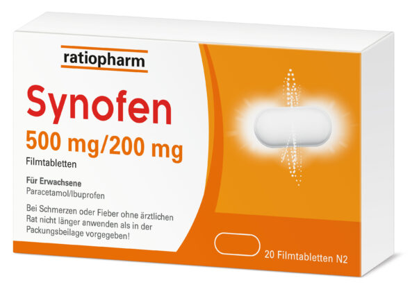 Synofen ist frei von Lactose, Gluten und Inhaltsstoffen tierischen Ursprungs. Es ist aktuell in der Packungsgröße OP 20 (PZN: 18218515) und zukünftig auch als OP 10 (PZN: 18218509) mit jeweils 500 mg Paracetamol und 200 mg Ibuprofen pro Tablette erhältlich. Die empfohlene Dosierung ist dreimal täglich eine Tablette. Die Anwendungsdauer sollte drei Tage nicht überschreiten.