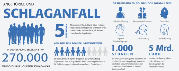 Trotz einer Gesundheitsversorgung auf hohem Niveau engagieren sich Angehörige in Deutschland sehr stark für Schlaganfall-Betroffene. Gesundheitsökonomen der Universität Oxford haben in einer EU-weiten Studie* ermittelt, dass Schlaganfall-Betroffene im Durchschnitt jährlich etwa 1.000 Stunden familiäre Versorgungsunterstützung erhalten. Den Wert dieser Leistungen beziffern die Forscher mit 5 Milliarden Euro.